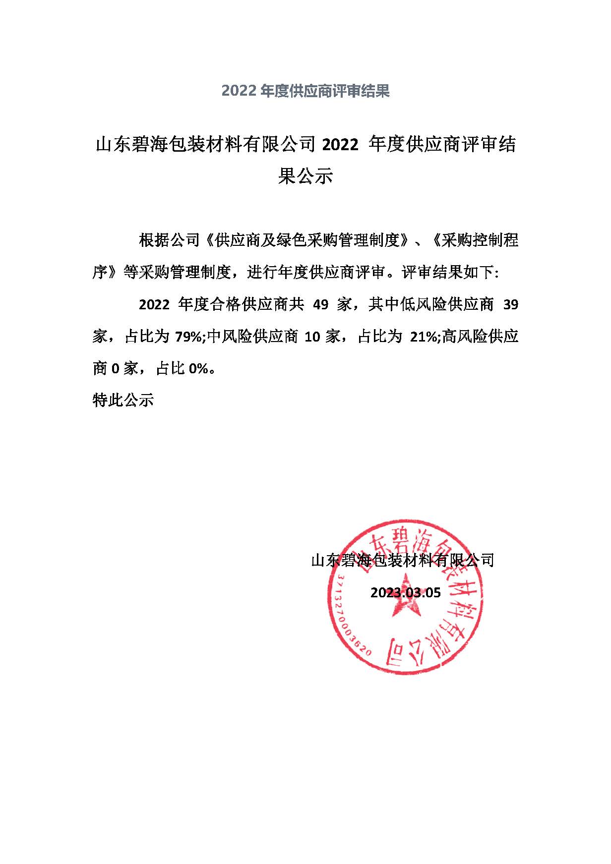 三、供應商風險等級評估結果